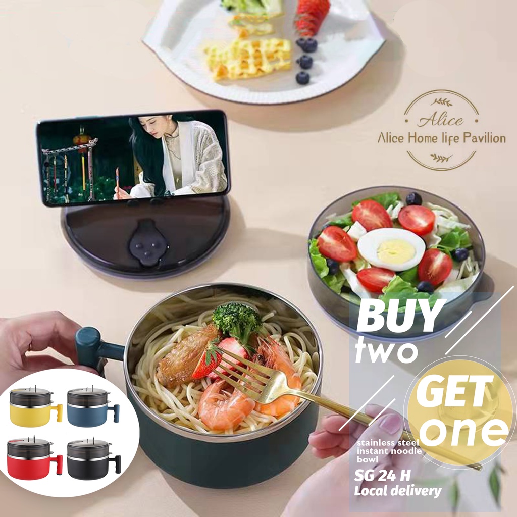 Buy 2 Get 1 304 Stainless Steel Instant Noodles Bowl With Lid Student Fast Food Cup Rice Soup Salad Rice Office Shopee Singapore